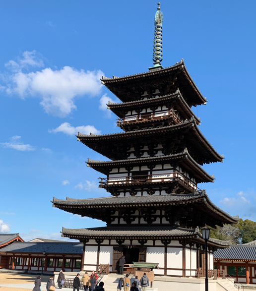なお、私は元旦には毎年恒例にしている近所の神社に初詣し、2日は日帰りツアーで久しぶりに奈良へ行きました。午前10時、JR大阪駅から臨時特急「まほろば号」に乗り、JR奈良駅まで1時間弱です。到着後、奈良公園内にある奈良ホテルへ向かいました。同ホテルは明治時代を代表する建築家・辰野金吾が関わり、1909年の創業です。メインダイニング(三笠)でワインを嗜みながら、お正月・フレンチコースをエンジョイしました。なお、1935年にアインシュタイン博士が来訪した際に弾いたピアノがこのホテルにあります。食事の後、薬師寺に向かい国宝・東塔、並びに同・金堂本尊(薬師如来・日光菩薩・月光菩薩立像)に拝願の後、厄除けの護摩祈祷を受け帰路につきました。そして9日は恒例の関西経済連合会の新年祝賀会が開催され、今年は年男として破魔矢を頂戴し、午年生まれを代表して乾杯の挨拶をいたしました(以上、写真添付)。