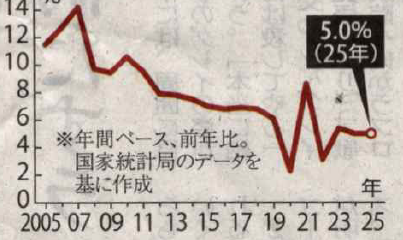 In addition, the National Bureau of Statistics of China recently announced that the real GDP for 2025 increased by 5.0% compared to the previous year. Although it achieved around 5% of the government’s target, the growth rate of nominal GDP, which is closer to people’s actual experiences, remained at 4.0%, marking the third consecutive year of “nominal-real reversal”.