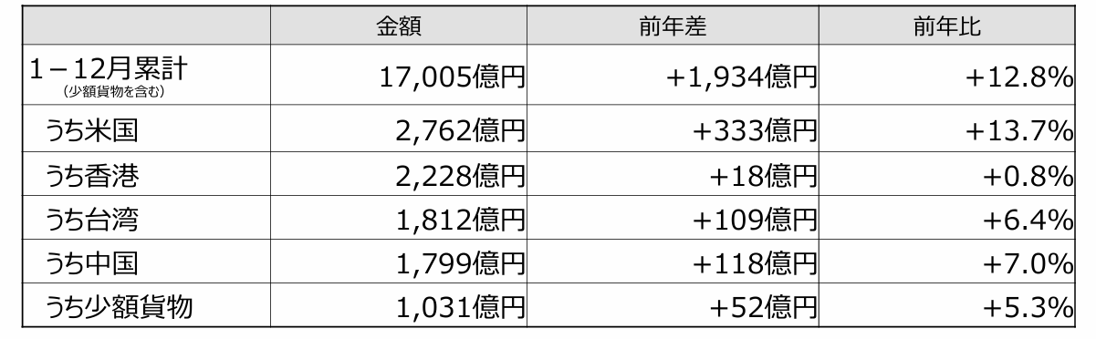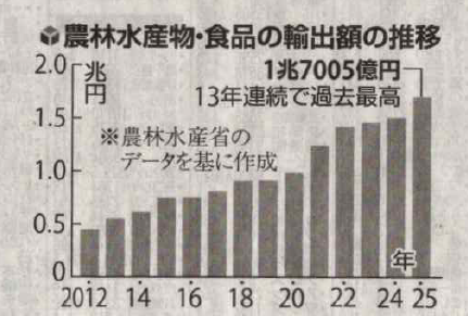 By the way, according to the Ministry of Agriculture, Forestry and Fisheries, the export value of agriculture, forestry, and fishery products and food in 2025 reached 1.7 trillion yen, a 12.8% increase from the previous year. Although the government’s target of 2 trillion yen for 2025 was not met, it marked the 13th consecutive year of record highs. The top export destination was the United States, and exports increased by 13.7% to 226.2 billion yen. It seems that the popularity of Japanese foods, such as Japanese green tea and beef, is increasing. Hong Kong, Taiwan, China, and South Korea were ranked below second place. Among them, what draws the most attention is that green tea showed the largest growth, nearly doubling from the previous year to 72.1 billion yen. Our country’s exports have traditionally dominated by hard goods (heavy chemical industry products) such as automobiles, steel, machinery, and chemical products, but all of these have reached the ceiling. As a trump card for the next generation, it will likely be possible to find a way forward by expanding exports of agricultural, livestock, and marine products (specialty goods), as well as soft sectors like anime and games.