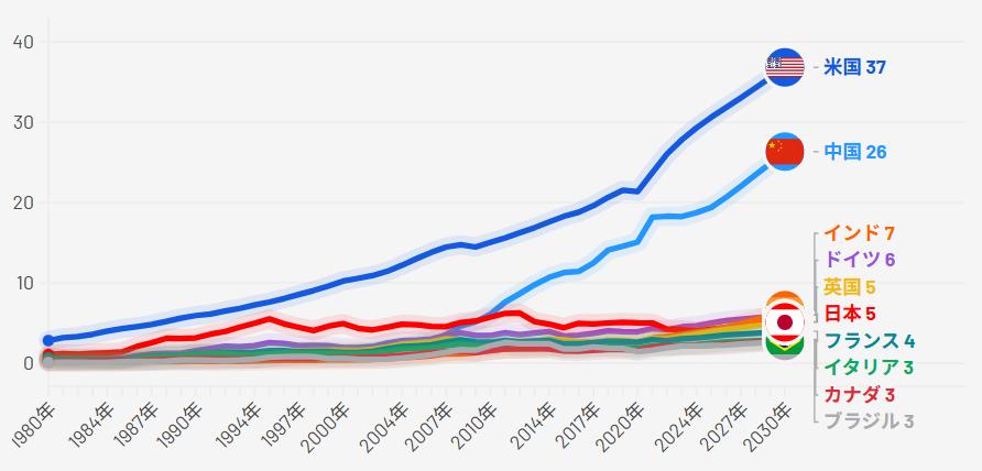 On the other hand, Japan’s GDP has stagnated since the collapse of the bubble in the early 1990s, a period often referred to as the “lost 30 years”. According to the statistics released by the IMF last autumn, Japan surrendered the position of second in the world in GDP after the United States to China in 2010 and became third, and by 2023 it was overtaken by Germany and fell to fourth place. Furthermore, this year, it fell to fifth place in the world, overtaken by India, and it is predicted that it will also be overtaken by the United Kingdom by 2030. And even in terms of GDP per capita, it ranked 14th in the world in 2010, but by 2025 it has fallen to around 40th.